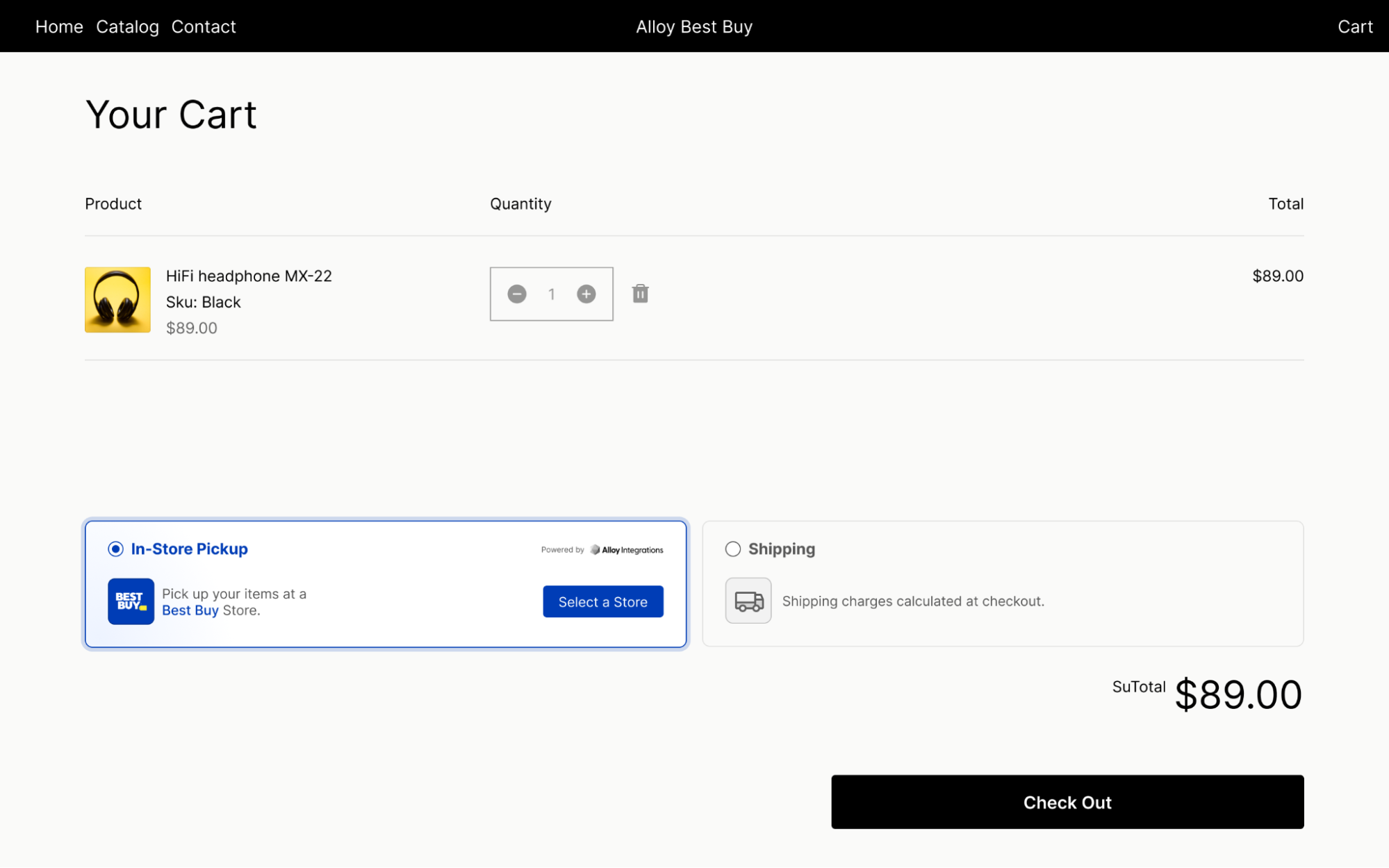 On the cart page, this is where the shopper will express intention to pick up the order at a Best Buy location. If the shoppers do not wish to pick up at a Best Buy location, they can still select Shipping before checkout.