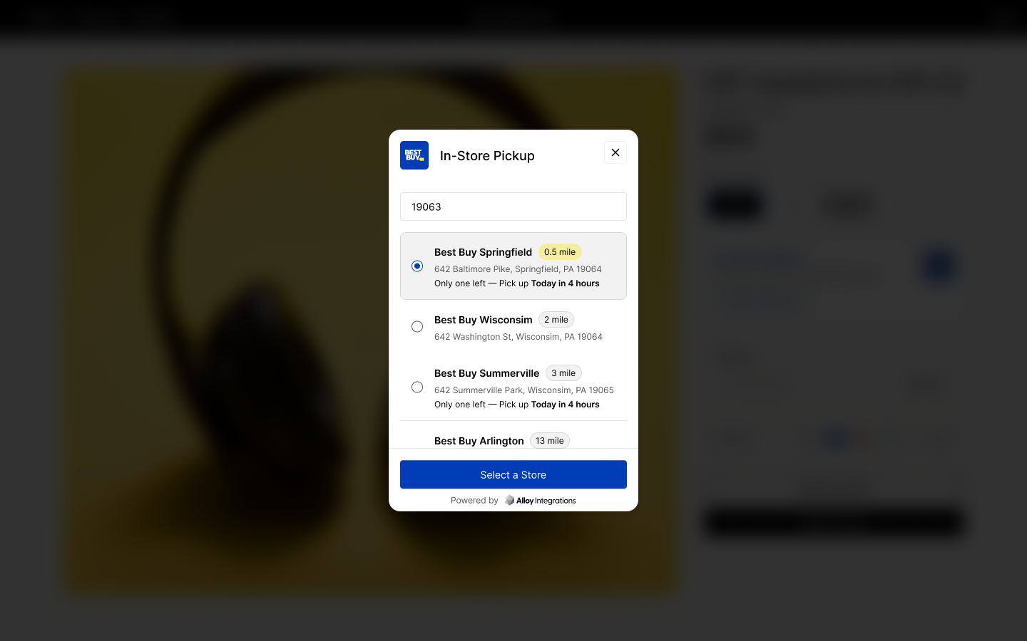 When shoppers visit a product page that is eligible for Best Buy In-Store Pickup, an In-Store Pickup component will show up.