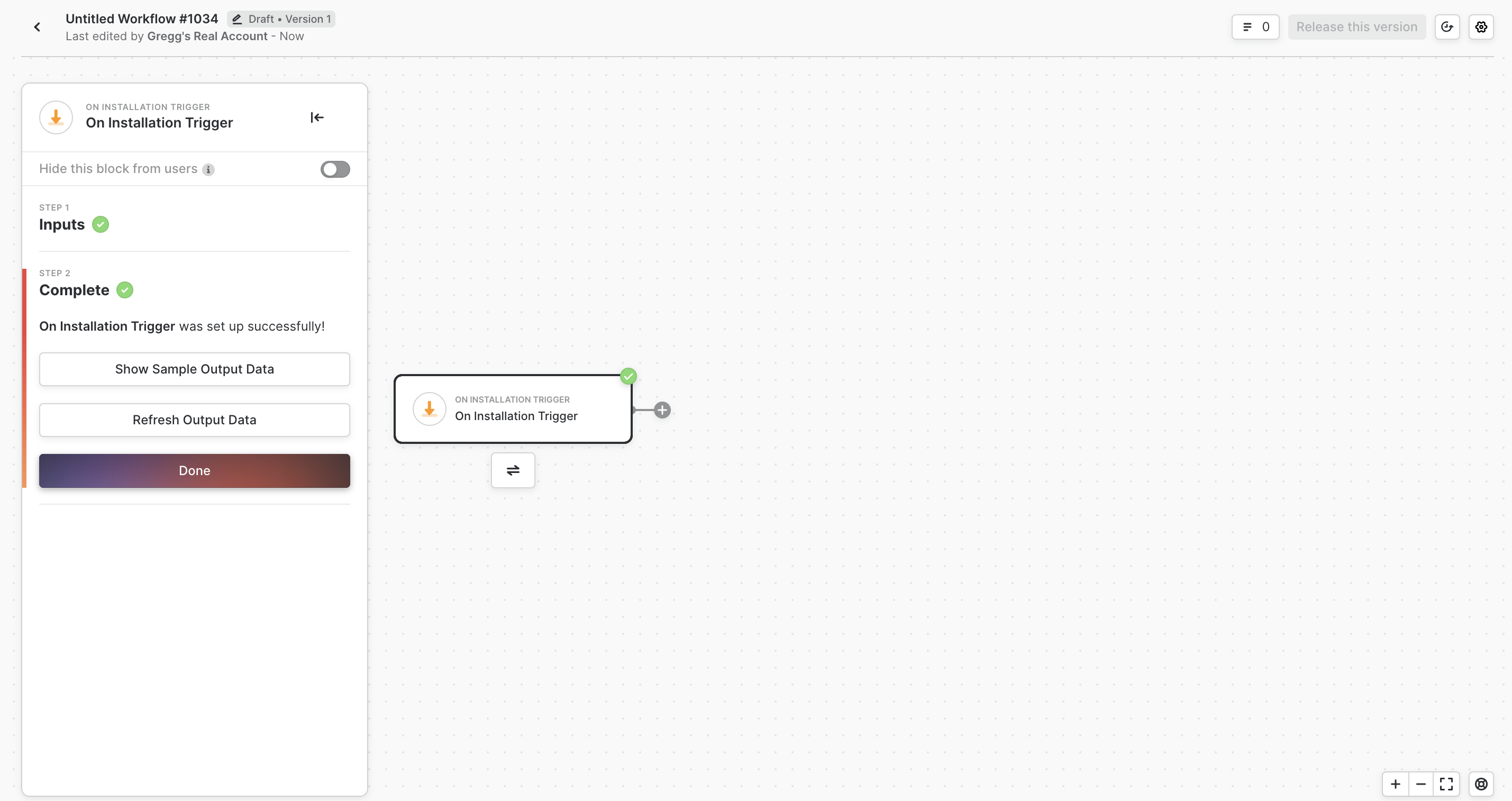 Drag and Drop a trigger into the workflow editor to start building your workflow. You can use any of our 90+ App triggers to get started. In this guide, we’re using the installation trigger located under the utilities tab.