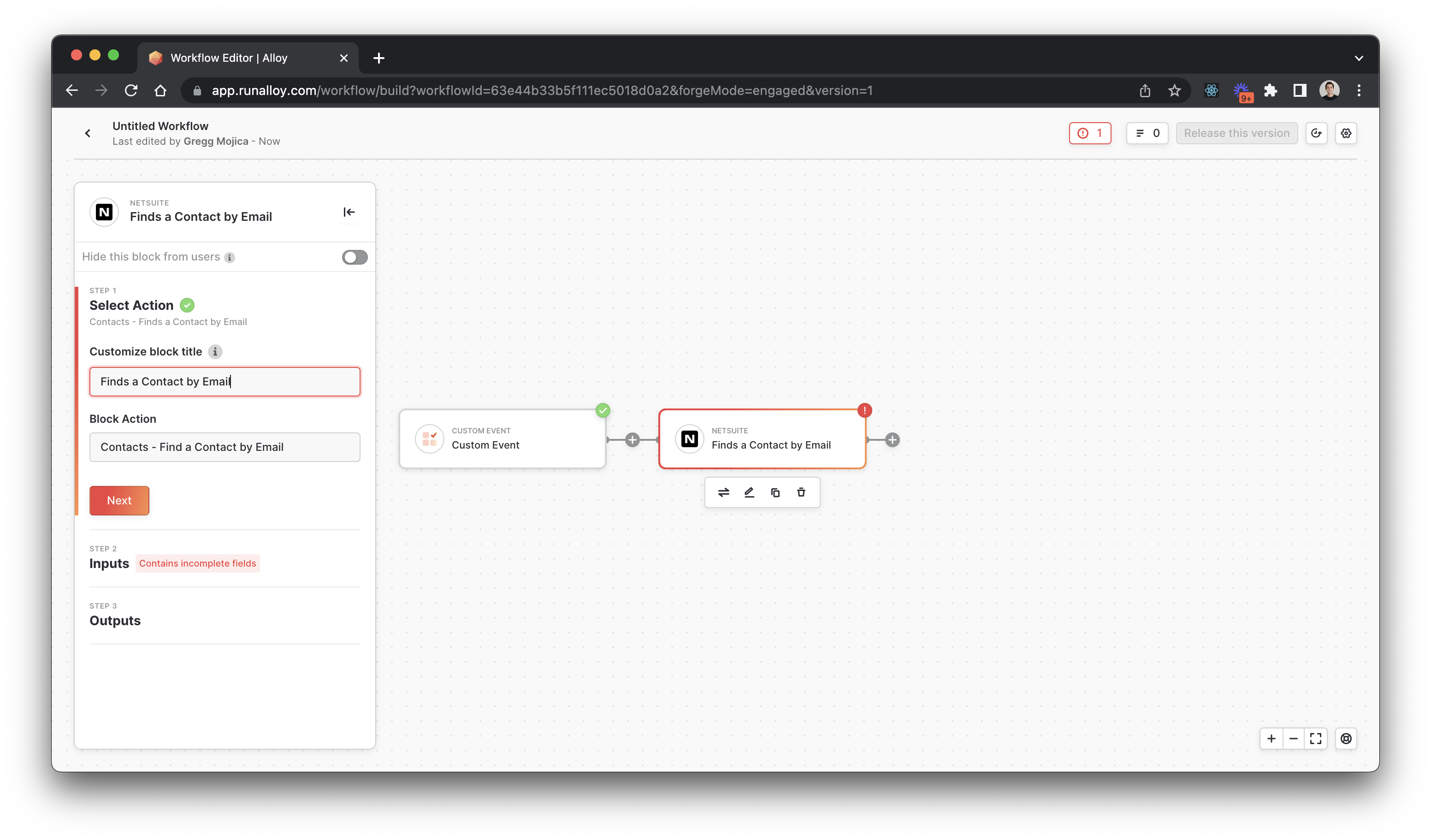 - Application Name: Select the integration created Step #1