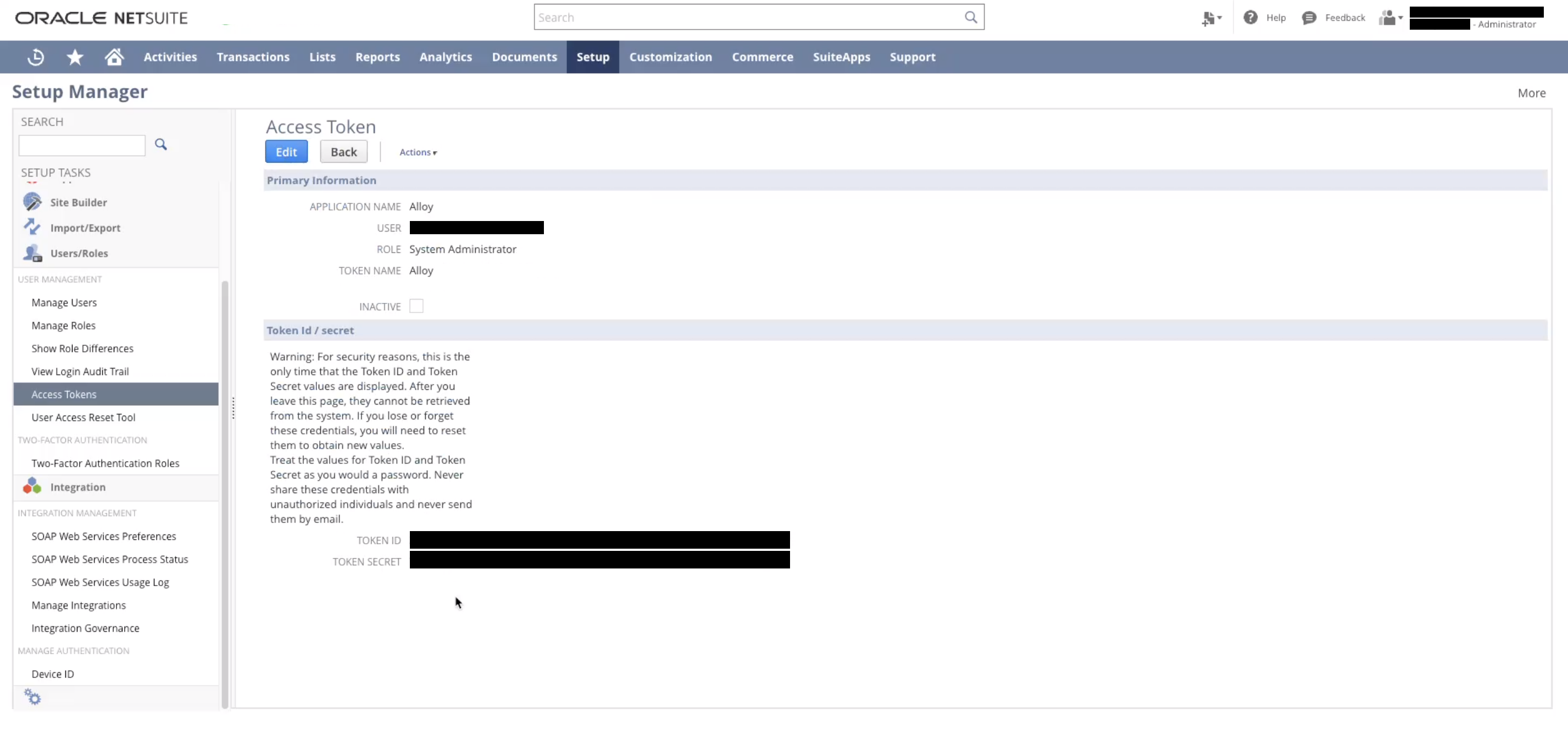 That’s a wrap! You’ll need these keys and the consumer secret and key from before. Use the keys you obtained from this tutorial when configuring NetSuite with Alloy.