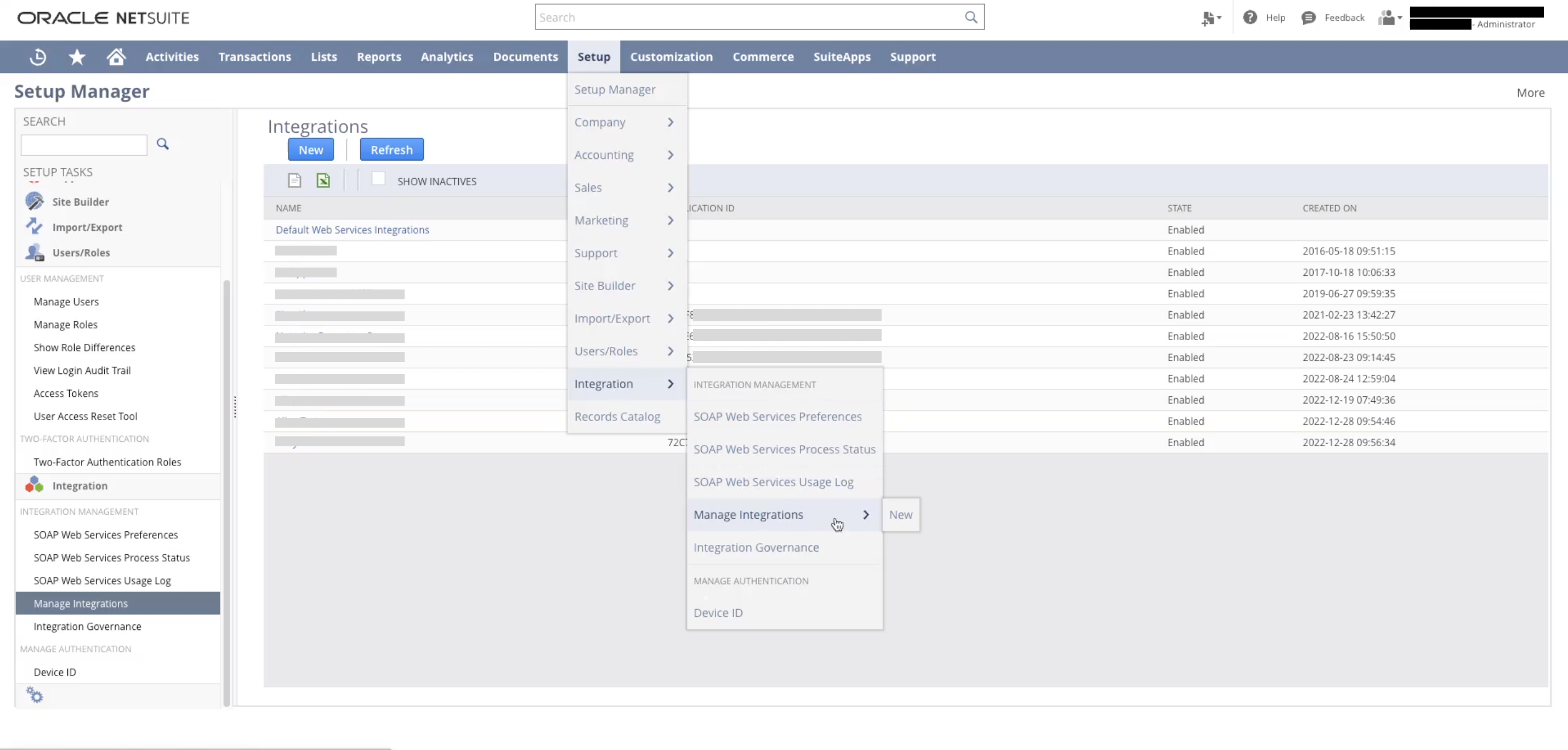 Navigate to the Setup > Integration > Manage Integrations > New section of your NetSuite account.