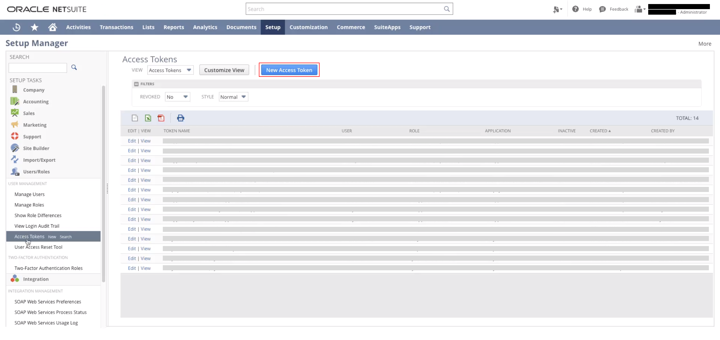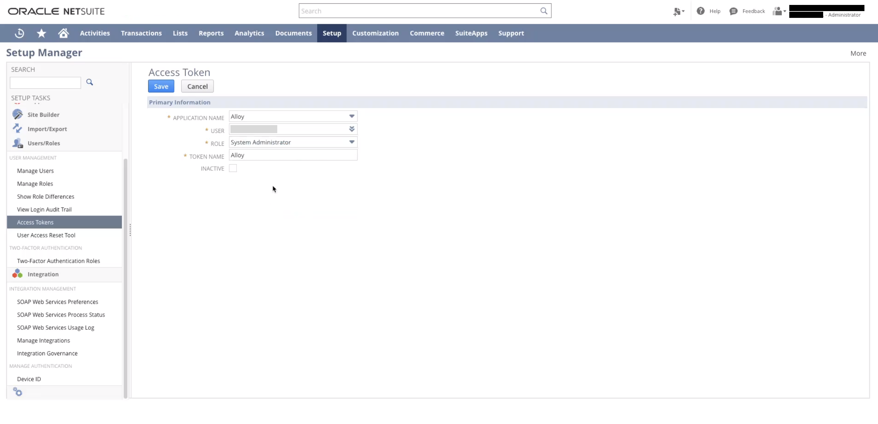 Lastly, navigate to Setup > Users/Roles > Access Tokens