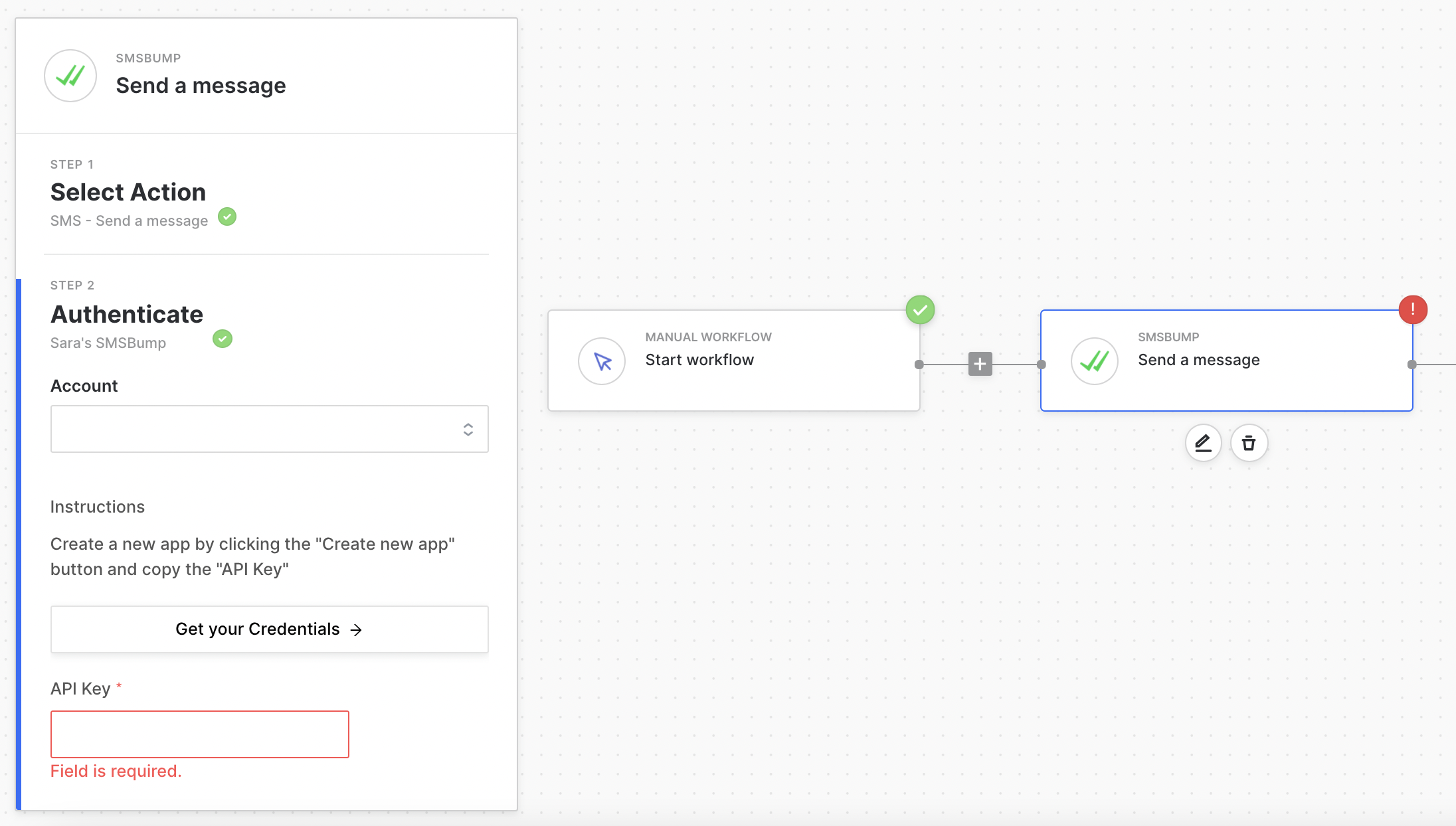In the next step, paste your SMSBump API Key into the field then press Validate