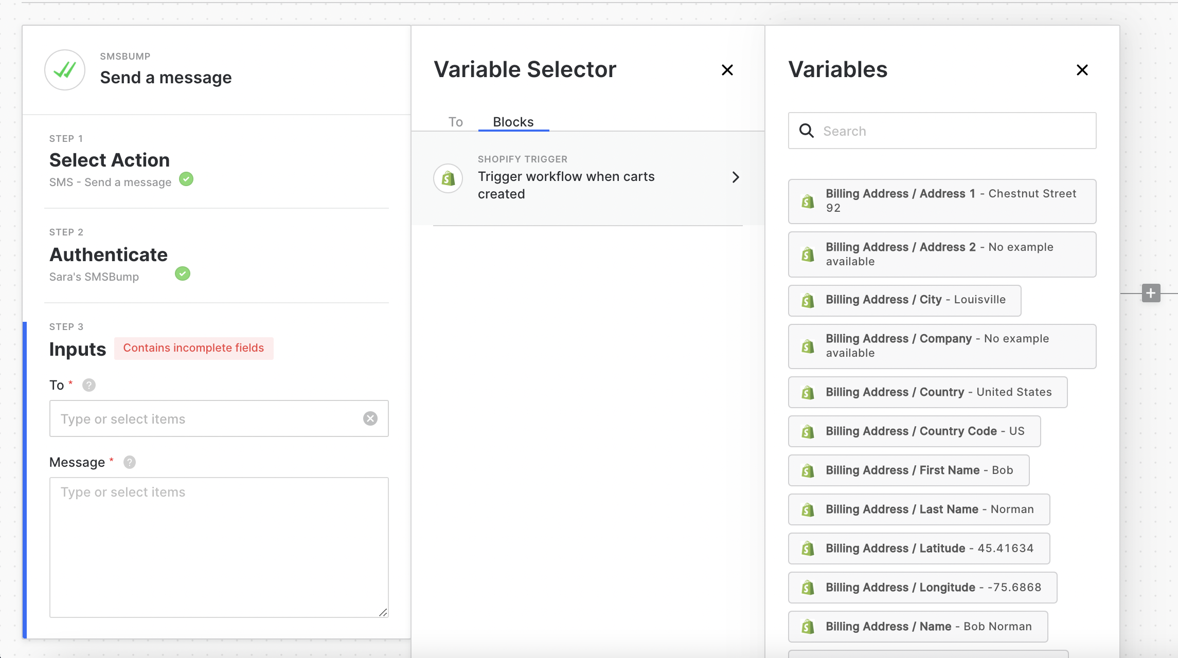 Proceed to the next step and fill in the required fields. For example, you’ll need to specify the number to send texts to and the message