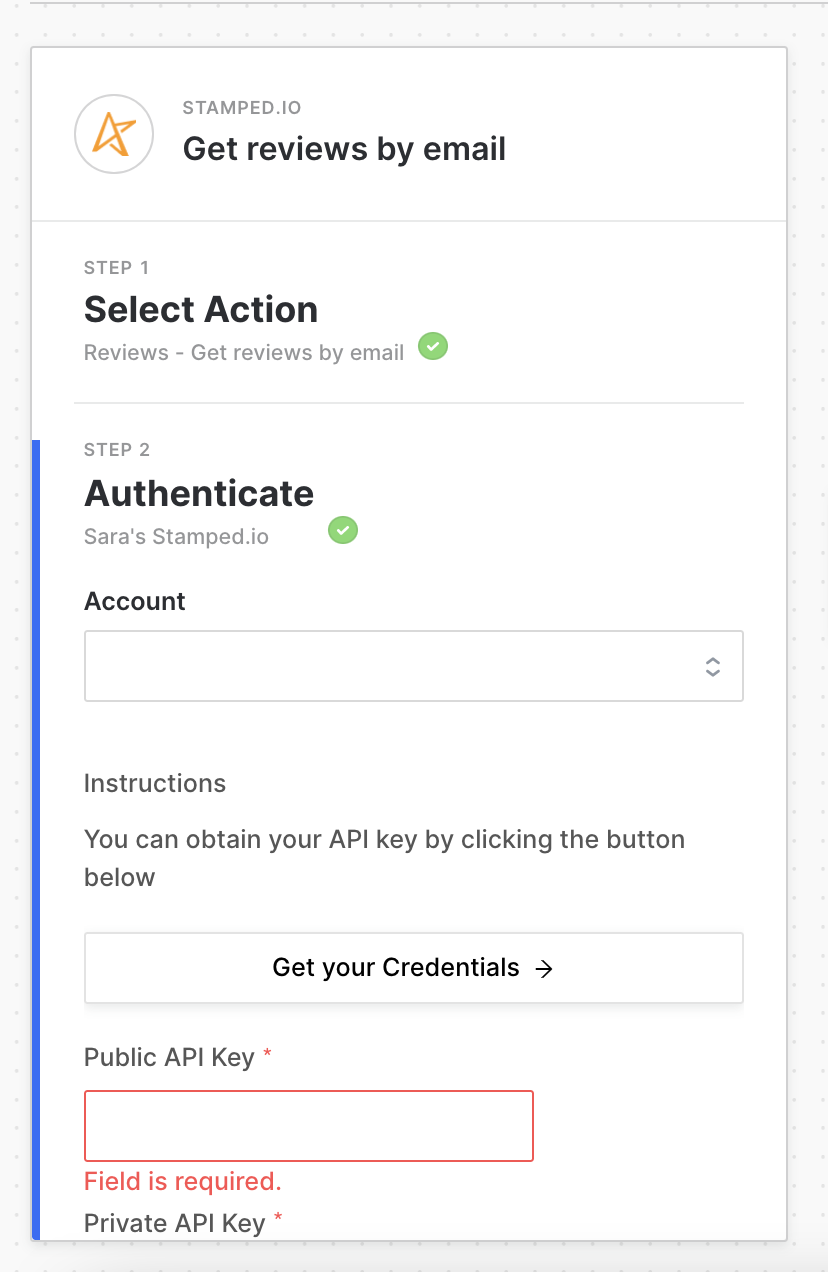 Authenticate your Stamped.io account by getting the keys from https://go.stamped.io/v3/#/settings/api