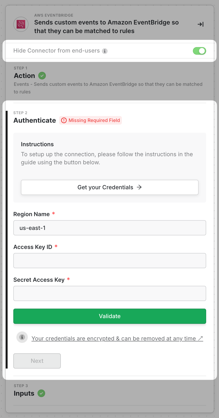 Now just pop in the two keys from the previous step along with the Region your DB is in and you are all set!