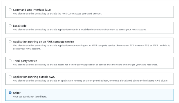 On the Access key best practices & alternatives page, select Other