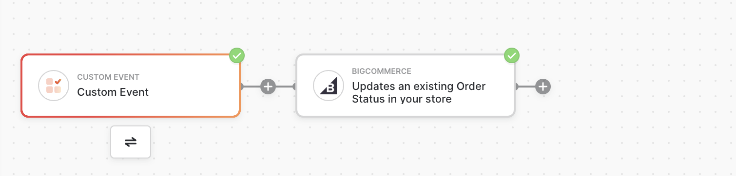 Let’s take a look at the example workflow below. This workflow triggers every time a Custom Event is called. Since this workflow has two blocks, a single run will result in two app actions.