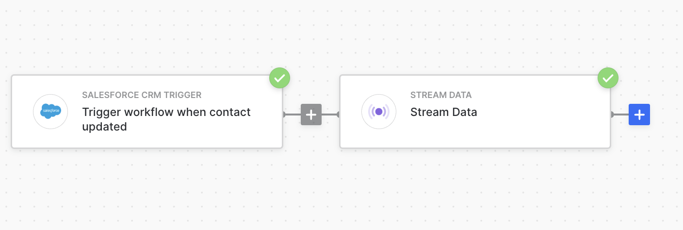 Scenario: After a 12 minute period, the poller runs and finds 17 contacts were changed. This will initiate 17 workflow executions, each with 2 app actions. Objects are not grouped into a single execution, if you’d prefer capturing many changes in a single execution, use our schedule trigger.