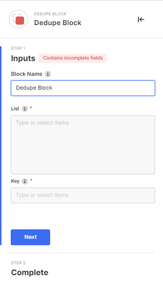 By running Dedupe on a list, you ensure your workflow only processes unique records—reducing redundancy and improving performance across downstream connectors.