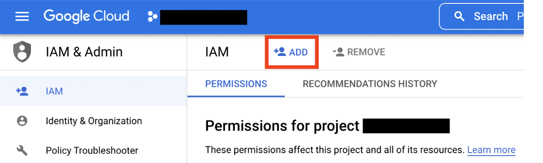 Go to the project principals list in your Google Cloud Console