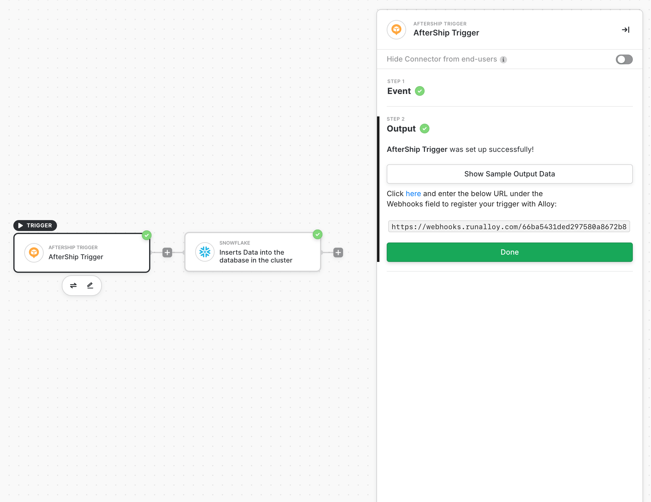 Third Party Apps like AfterShip require a manual webhook URL be registered as seen below. Simply take theworkflowId
