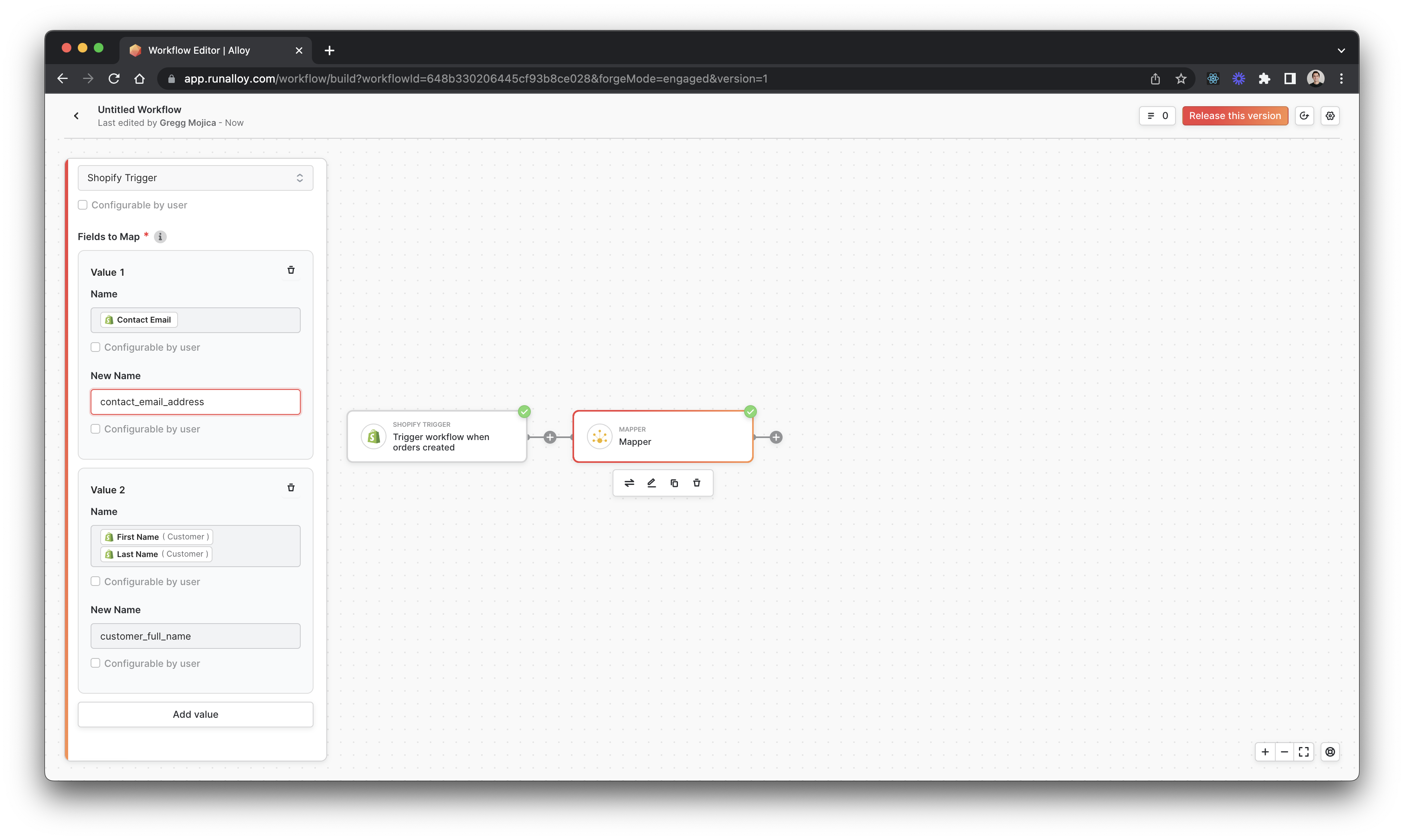Note:When working with arrays, the Mapper block currently only maps one of the fields from the index of the block selected. This may cause inconsistencies in the output. Ideally, the block should be able to map all of the same keys within an array for consistency.