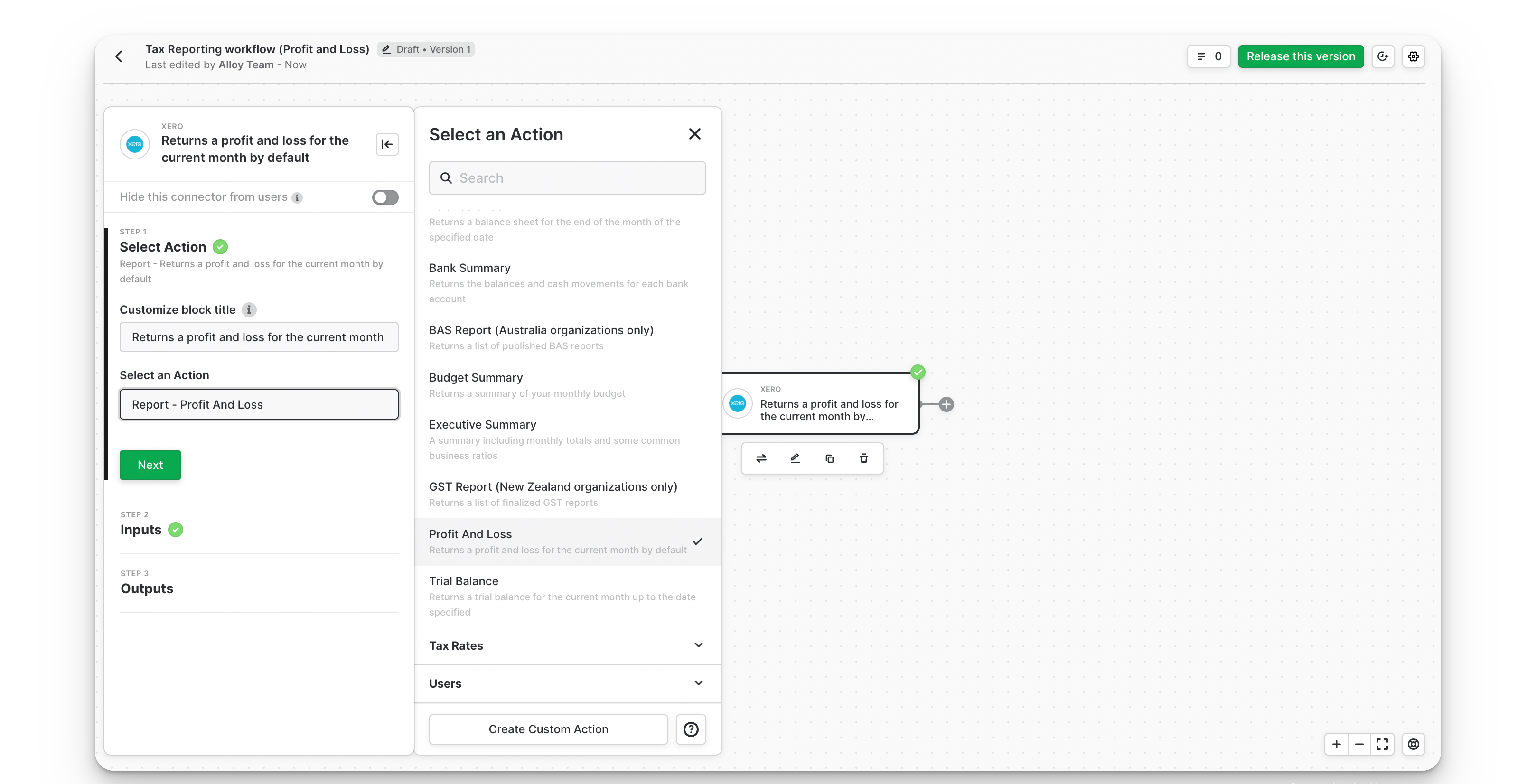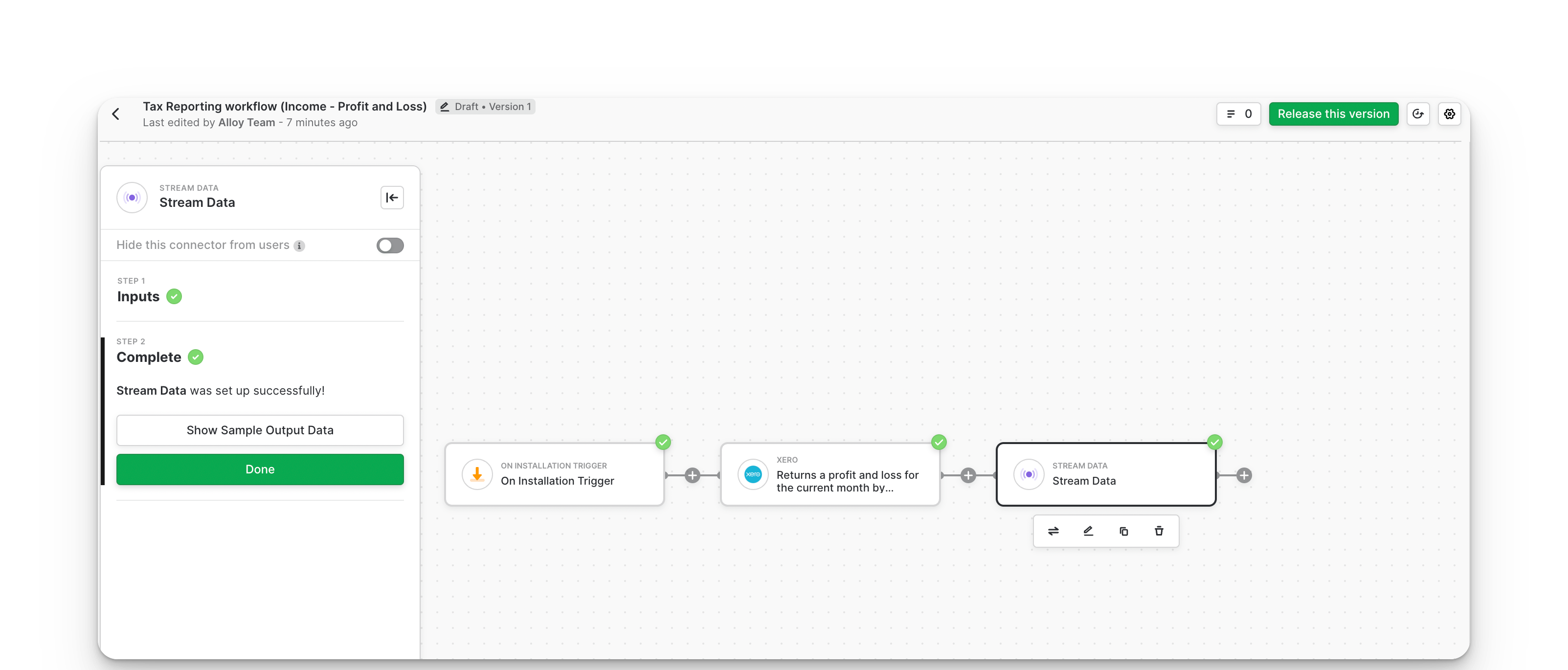 To get a business’ income data, you’ll need access to its profit and loss statement. To start, create a workflow using the On Installation Trigger.InfoThe On Installation Trigger tells Alloy to only run this workflow when an end user connects to your app. If you need to run the workflow multiple times, use a Custom Event or a Scheduled Trigger to run at specific intervals.