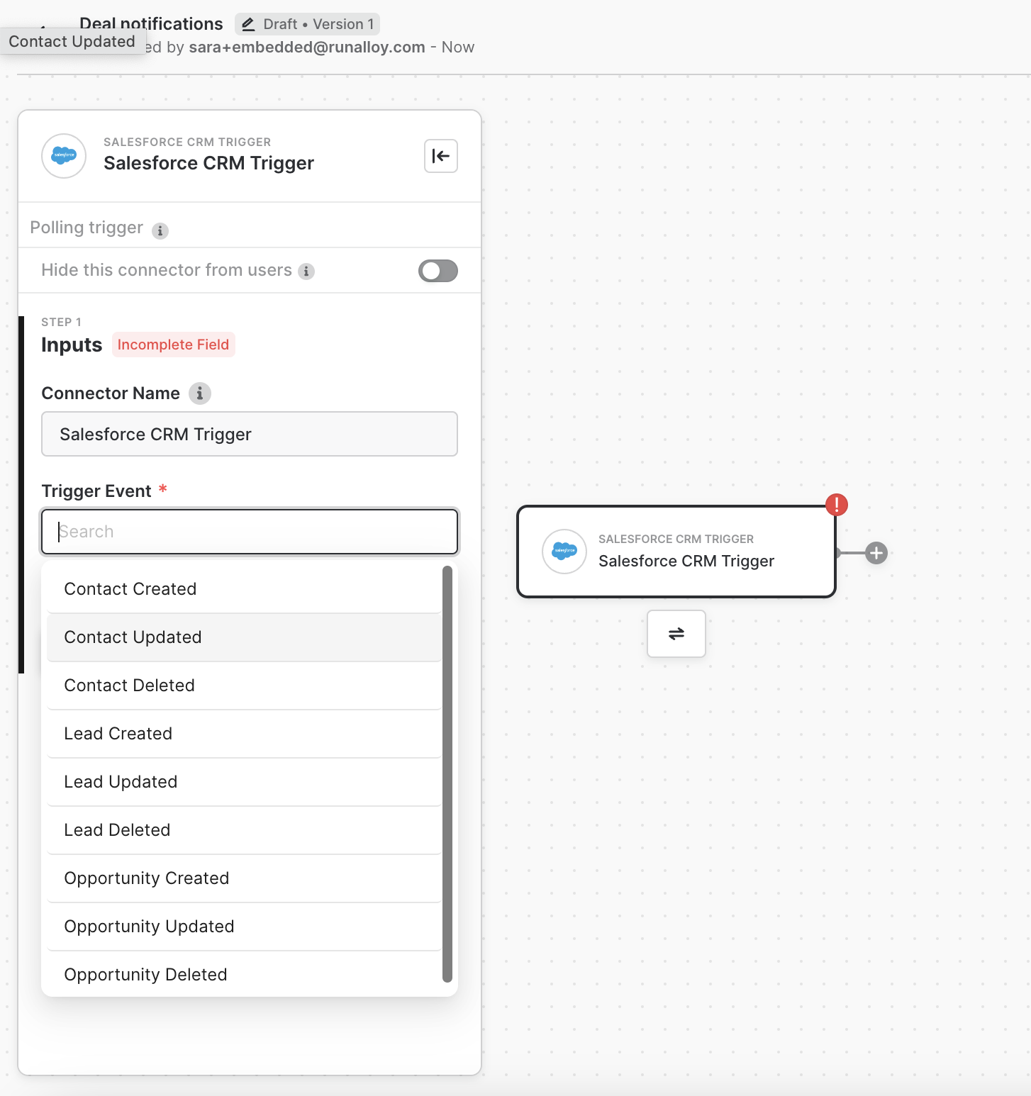 - Define the trigger event for the workflow, such as a deal status update or a new deal creation in the third-party system.