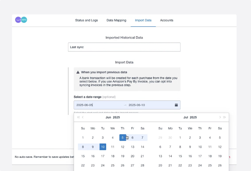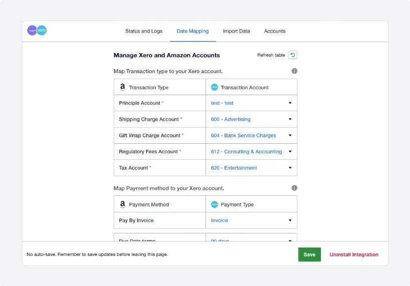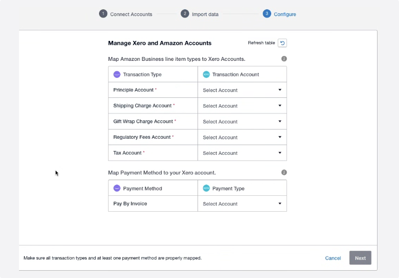 - Map your Xero accounts to the corresponding Amazon Business fields:
