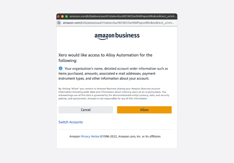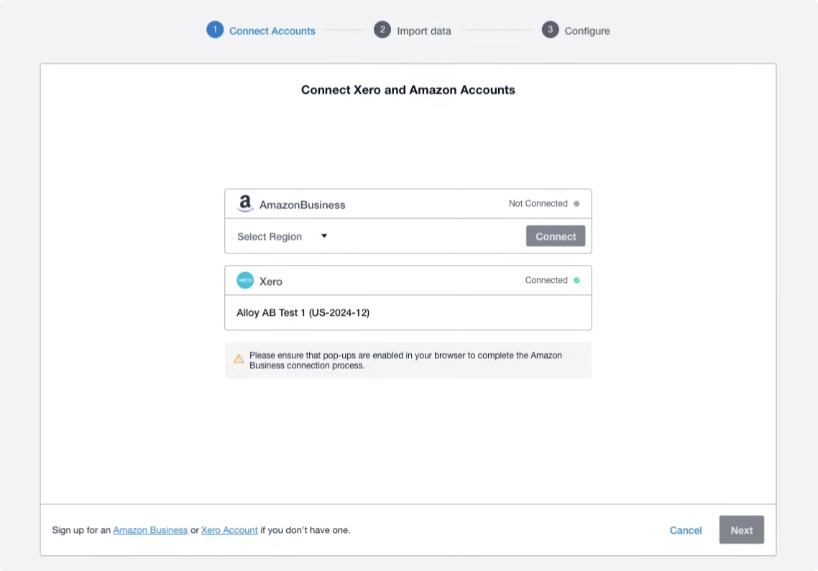 - You can only connect a single Xero tenant to a single Amazon Business account currently.